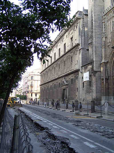 Viendo cosas como estas ,resulta un eufemismo hablar de peatonolizaciones, pues por aqui no pueden pasar ni las personas, estamos ante una pista de obtaculo que ni el mejor caballo de salto podria superar; ante una pista americana, que el mas aguerrido soldado salvaria .- Señores taxista ya se pueden ustedes poner en huelga la noche del pescado o alumbrado, la noche de los fuegos artificiales, todas las noches de la feria , ya se pueden usted poner de huelga hasta el año que viene ( ojala ) , que ustedes por aqui no pasan , ni por muchos mas sitios .- Señores visitantes de verdad no vengan,