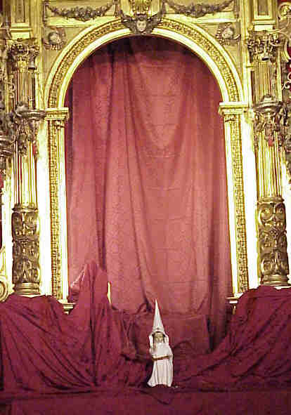 Pues hoy, mi querido lector o leal detractor , ayer al ver a la Soledad, poner a Dios gracia, broche de oro a una Semana Santa mas y a una Semana Santa menos; con toda su carga de vivencias y experiencia , buenas , malas o regulares; con toda su carga de emotividad, de sentimientos de recuerdos para los que ya no estan; hoy usted y yo . nos sintamos esa indescriptible sensacion de vacio , como este nazarenito que se ha quedado solo en un altar de insignias ,sin insignias tras realizar una estacion de penitencia .-