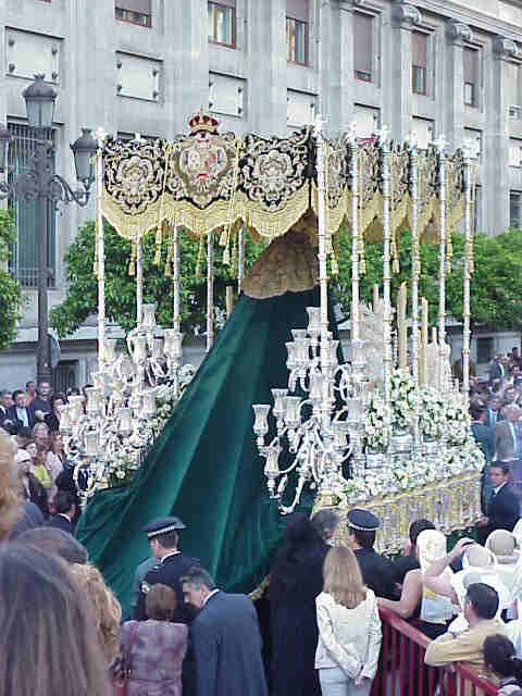 de la Virgen por lo que procesiono con un manto verde liso. Las bambalinas
