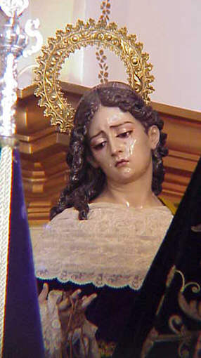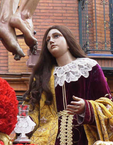 En nuestra Semana Santa , tiene muchismo trabajo , yo me atreveria a decir que la que mas . Se representa casi siempre desmelenada ( con pelo natural o talla ), puede aparecer con la coronita simbolo de santidad o no y aparece o en solitario ( Monserrat y la Hiniesta ) o junto a las otras dos Marias ( Maria Salome madre de Judas Tadeo - el Judas Bueno- y Maria de Cleofas madre de Santiago el Menor ). Solo en el paso de la Hiniesta va solo con el Crucificado, mienstras que en los demas caso va en paso de Misterio .-