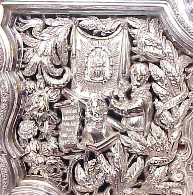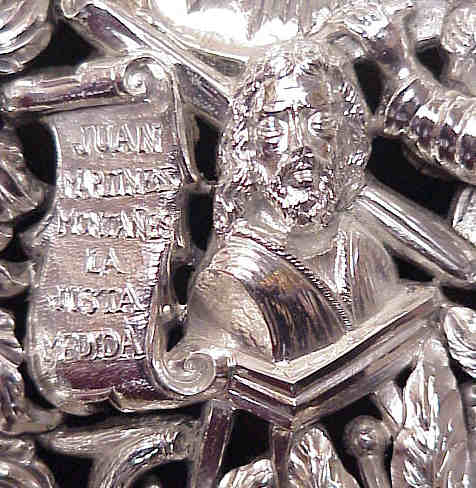 Pero si se fija mas y tiene buena la vista o unas buenas gafas para "el cerca", verá el busto del Señor de Pasión y a su lado el lema: "JUAN MARTINEZ MONTAÑES . LA JUSTA MEDIDA".- De justa medida, es precisamente de lo que