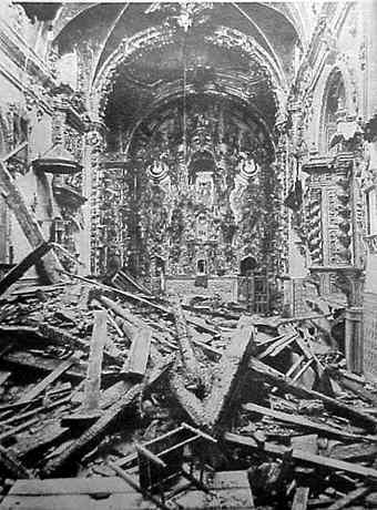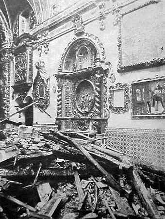 En la noche del 11 al 12 de Mayo de 1931 , al grito de : !Viva la Republica! le pegaron fuego a la capilla de San José.,Las hordas lo habian intentado con el Palacio Arzobispal ,y los conventos de San Buenaventura, San Leandro y San Juan de Dios y gracias a la intervencion de sevillanos de a pie se logró evitar.- Desgraciadamente, el colegio de Villasis de los jesuitas ; la capillita San Jose no corrieron la misma suerte, quedando esta última en el estado que aqui ven asi como , fueron victimas de asalto e incendios los conventos e iglesias el Buen Suceso, los Paules, las Mínimas y Capuchinos . Curiosamente el 14 de marzo de 2005 la capilla de San Jose sufrio un asalto mas ligth del que aqui ven , pero fue el tercero anticlerical del año pasado en SevillaVER .- El primer gobernador civil republicano Don Vicente