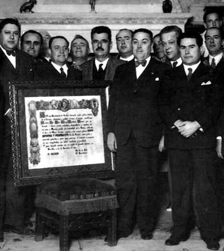 A su izquierda Don Hermenegildo Casas y a su derecha Don Jose Gonzalez Gallardo y Don José Gonzáñez y Fernadez de la Bandera , alcalde de Sevilla desde Junio de 1931 a Diciembre de 1933.- El 18.Junio Sevilla. mueren 3 guardias y 4 huelguistas