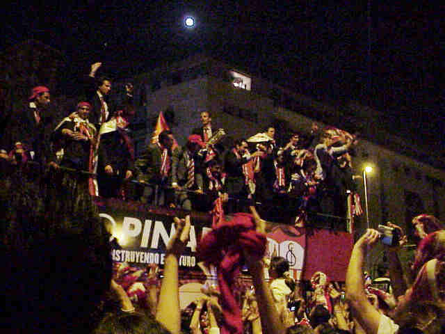 No hay duda de que ayer fue una noche de 5 de Enero en pleno caluroso Mayo , donde se lanzaba desde esta carroza roja, imaginarios caramelos y una enloquecida afición alzaba los brazos para recogerlos . Banderas, bufansas, mucho Arrebato, pantallas azules de moviles y camaras que quedarn impresa en la memoria de la historia deportiva ( y no deportiva) de nuestra ciudad.-