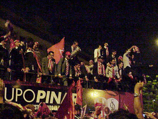 Si los Reyes Magos, son los que reparte ilusión, estos que ven aqui encuadran dentro de la defición, pues no lanzaban caramelos, lanzaba una alegria desbordada , de haber paseado , no solo el nombre de Sevilla por Europa, sino conquistarla , con sus "tercios sevillistas" , tras poner "una pica en Flandes" y conquistarla.-