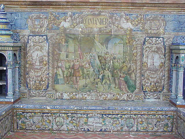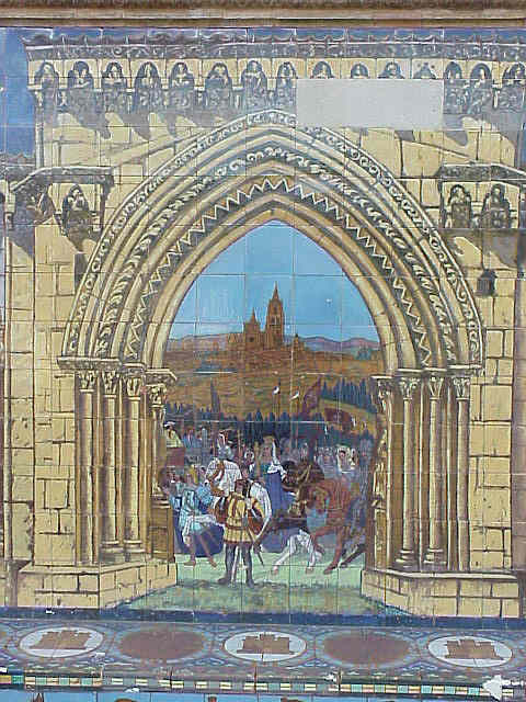 ![]() En enero de 1475 se firma la Concordia de Segovia entre Isabel y Fernando donde se produce un reparto de competencias entre ambos monarcas. Isabel es "reina y propietaria de Castilla" y su esposo recibe el título de rey Curiosamente este azulejo es el unico cuyo nombre de la provincia aparece por dos veces y no en el centro del mismo como ocurre en los demas .-