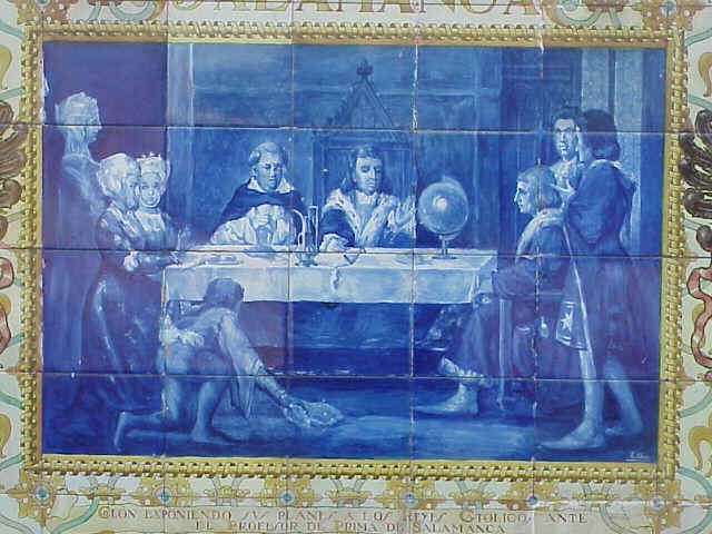 Colon expone sus planes a los Reyes Catolicos ante el profesor de Prima de Salamanca
