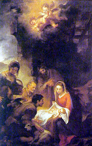 Por aquello de que esta noche es Nochebuena y mañana es Navidad, no me des la bota Maria que no me puedo emborrachar, no sea que me cojan los de la Benemerita y me haga soplar por el globito y me quiten mas puntitos , que al otro equipo de la ciudad ,hoy les traigo este lienzo , pero con una segunda finalidad didáctica y aclaratoria .- Esta inconmensurable obra es la Adoración de los Pastores ( muy adecuada para las fechas y como decoracion de felicitaciones de Pascuas ) es obra de Bartolomé Esteban Murillo que pintara o pintase entre 1668 y 1669 , dentro del importante repertorio para el desamortizado convento de los Capuchinos y que está en el Museo de Bellas Artes de Sevilla .-