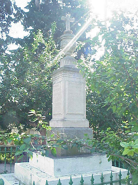 16 de Noviembre de 2006Entrando en el Cementerio de San Fernando a la derecha , hya un recoleto mausoleo que recuerda mas a un crucero , que cuesta hasta trabajo ver por la frondosidad de arboles y flores que hay a su alredor . -