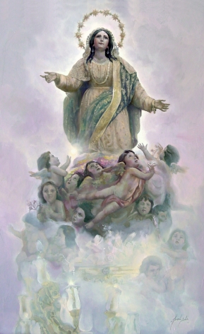 1.- Pregunta obligada ¿ se esperaba esta designación ? Para mí ha sido una gran sorpresa. Cuando recibí la llamada me encontraba en mi estudio pintando un cuadro para la exposición individual, proyectada para noviembre de este año, en la galería Haurie. Fue una grata noticia, pues para mí es un gran honor haber sido designada por el Consejo General de Hermandades y Cofradías para esta labor tan hermosa. Representa una gran responsabilidad porque, además del deseo de que el cartel satisfaga a los sevillanos, los cartelistas de años anteriores son artistas de gran prestigio, algunos de ellos han sido profesores míos y siento una gran admiración por sus obras. 2.-¿ Es usted próxima al mundo cofradiero de Sevilla, pertenece a alguna hermandad, sale de nazarena ? No pertenezco a ninguna hermandad de Sevilla, soy hermana de la Hermandad de Ntra. Sra. de la Asunción de Cantillana, para la cual hice el cartel del II Centenario Fundacional en 2005, pero vivo la Semana Santa sevillana como espectadora y en algunos de mis cuadros he interpretado varias escenas relacionadas con el mundo cofrade. Creo que todas las vivencias, y sentimientos que impregnan la Semana Santa no pueden pasar desapercibidos para todo aquel que observe desde el corazón, y que esa explosión de sensaciones como olores, sonidos, imágenes,etc. hacen aflorar las emociones y nos vuelven más sensibles a lo que nos rodea. 3.- ¿ Sabe que pasara a la historia del mundo de nuestra Semana Santa como la primera mujer seleccionada por el Consejo de HH y CC? No conocía con certeza ese dato hasta que comencé a oírlo, verdaderamente ese hecho convierte la realización del cartel en una doble responsabilidad para mí, pero también me emociona la posibilidad de expresar la visión de la Semana Santa desde la mirada femenina y agradezco la confianza depositada en mí. Del mismo modo desearía que otras mujeres también pudieran sentir la ilusión de ser cartelistas en años venideros. 4.- Hace veinticuatro años que una mujer no pinta un cartel de Semana Santa sevillana desde el inmortal cuadro de Carmen Laffon hoy colgado en el Senado español ¿ ya era hora que volviera una mujer no ? Sí, ya Carmen Laffon plasmó con exquisita sensibilidad su propia visión de la Semana Santa. Aunque hayan pasado veinticuatro años, pienso que lo importante es que el hecho de volver a elegir a una mujer para esta labor abre un nuevo camino para mirar hacia delante y aportar nuevos matices a la espléndida gama que, sin duda, ha proporcionado cada pintor con su personalidad y maestría. 5.-¿ Se le ha venido una primera a la cabeza de lo que va a pintar, ya lo tenia en mente de como lo haría o lo tiene que madurar ? Tengo que madurar la idea. Es muy difícil sintetizar en una imagen todos aquellos elementos que intervienen en la Semana Santa sevillana y mucho más complicado teñir la obra de la emoción de los sevillanos, que traspasa la frontera entre lo plástico y lo espiritual. 6.- Un cartel no es lo mismo que un cuadro ¿ es fácil a golpe de vista anunciar desde una pared la Semana Santa de Sevilla ?.- No es fácil, sobre todo porque estamos rodeados de múltiples carteles que pretenden cumplir dicha función, anunciar. Además, el cartel de Semana Santa no anuncia igual que cualquier otro, sino que se convierte en un espejo donde todos anhelan ver reflejados los sentimientos vividos desde su experiencia. Este componente espiritual es el que más me atrae en la labor plástica, pero a su vez creo que resulta ser el más difícil de expresar. 7.-¿ Alguna Sagrada Imagen de especial
