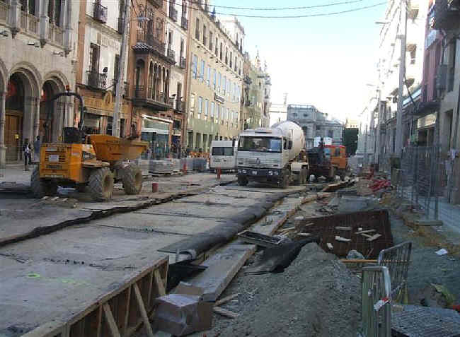 Esta foto está tomada desde la Pasarela , que se ha combertido en una especie de polvero o almacen de aridos y lo que se ve al fondo es la "no entrada" a la calle San Fernando, abierta literalmente en canal , con el trabajito que les costo a nuestro antepasados cerrarla .-