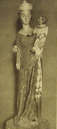 La Virgen de la Hiniesta Gótica del siglo XIV, la original, una de las Virgenes mas antiguas de Sevilla, la dejaron como la pueden ver en la foto de la derecha ; suponemos que sus autores se creyeron de esa forma mas libres y mas democráticos. La actual, ante la que asistiran la Corporación, el próximo viernes. obra de Castillo Lastrucci de 1945, es una reproducción de la que aqui ven en la foto .-