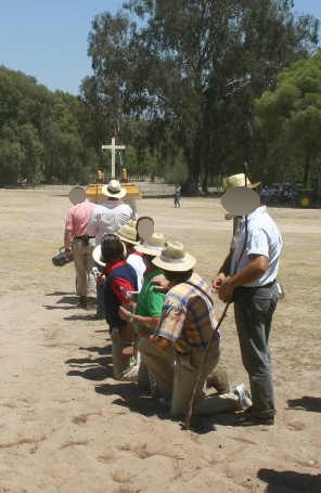 burlescamente actitudes "piadosas".-