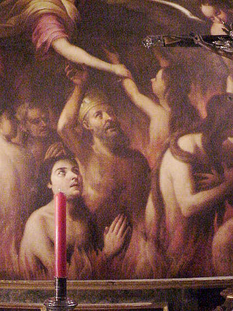 Aqui tiene el detalle de esta magna obra de lienzo de Animas Benditas del Purgatorio , dentro de la magnifica colección de cuadro que poseen esta iglesia como el que comentamos en Lienzos Eucaristicos II