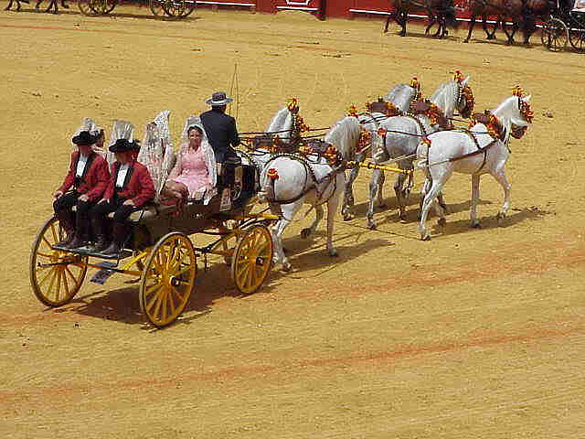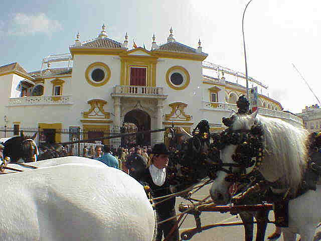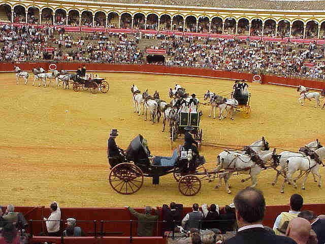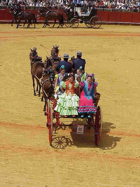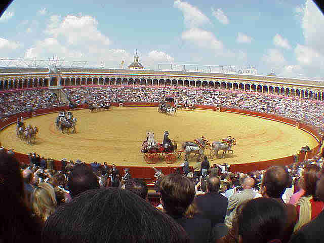 Oiga y si se le calienta la boca y se anima , pues mire de propina puede ver la Maestranza si nunca la ha visto y ver estas maravillas evolucionando en su interior. No se preocupe suele haber entradas y son a un precio mas que asequible . Sin duda todo un espectaculo , a modo de "pregón por lo feriante", que despues lo puede culminar llengandose a la Feria a tomarse el cuchareo al que mereferia anteiromente o dentro de la zona del Arenal combidarse ( que todo el mundo sabe que es un verbo reflexivo ) donde hay mas que una interesante oferta de tapeo siendo :una buena forma de empezar la Feria.-