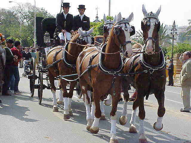 Mire sinceramente si ya lo ha visto, no vaya porque siempre es lo mismo ( hubo un lejano tiempo que no lo era ), pero si no lo ha visto nunca , con idependencia de que les guste o no la Feria o le guste o no los caballos, mire tiene la oportunidad de oro de ver posiblemente la mayor concentracion de enganches del mundo dentro de una calle y ademas al aire libre y de balde .-