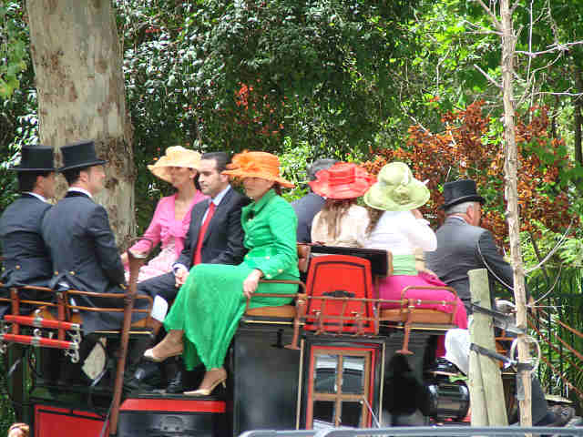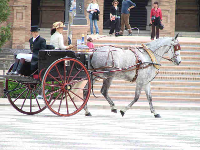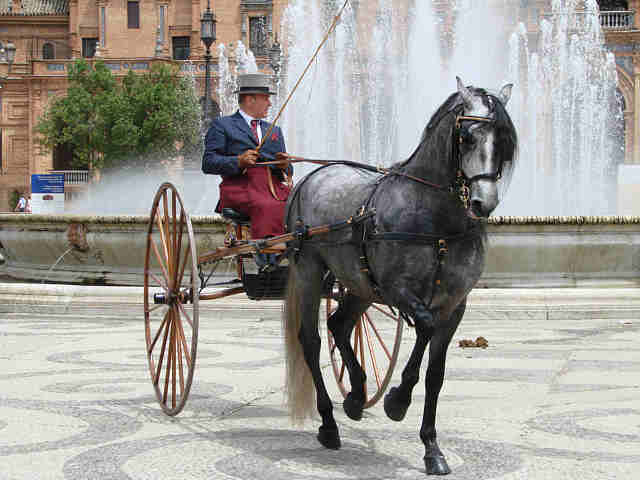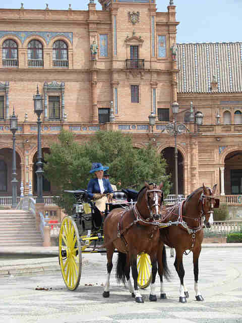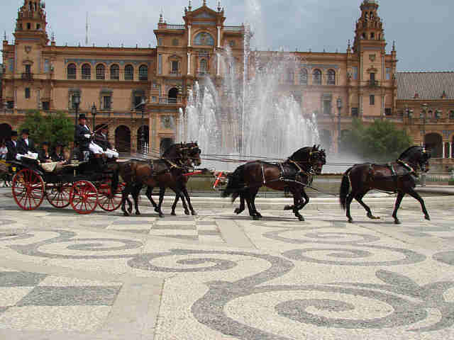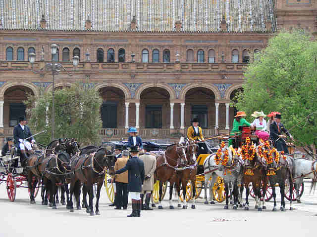 23 de Abril de 2007Una vez finalizada la Exhibición de Carruajes en la Maestranza ( y en la calle Adriano y Paseo Colón ), algunos de sus participantes, tuvieron el buen gusto de darse un paseo por la Plaza de España y el Parque de Maria Luisa, mostrandonos estas imagenes nostálgicas de la Feria del Prado, cuando a las altas horas de las tardes de Feria de calor, caballistas y enganches buscaban el alivio del frescor del Parque .-