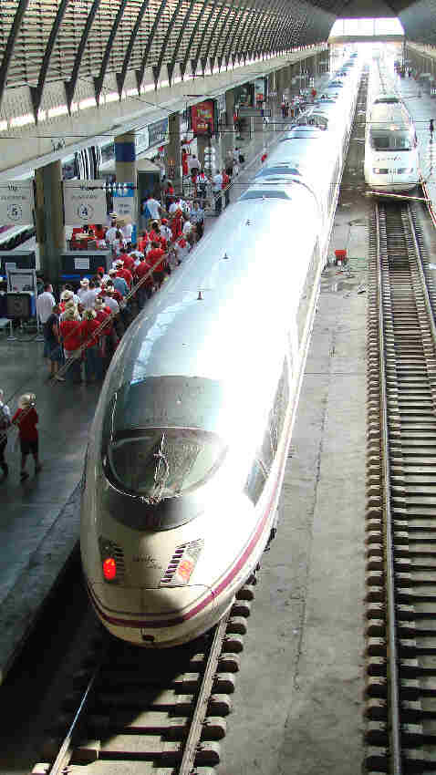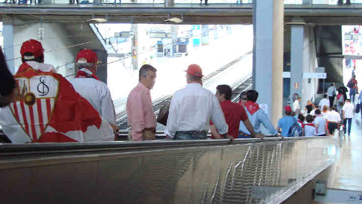 Todos los andenes, todos los AVES, todas las escaleras mecanicas , todos los accesos tenina un único destino no Madrid , sino traerse esta noche de vuelta otra Copa, otro triunfo , en una autética marea humana roja , llevando como equipaje un inmeso equipaje de ilusión , de entusiasmo y de un hermoso sueño del que sevillisimo no se quiere despertar