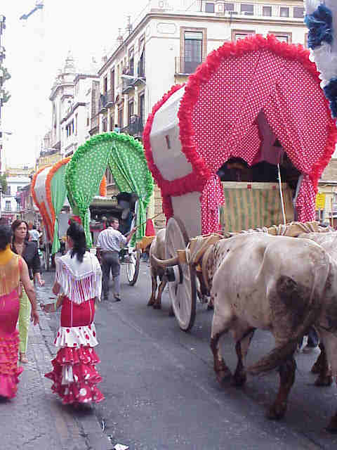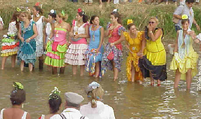Para cruzar polvorientos caminos a pie como la Raya Real o rios como El Quema , bajo un Sol inclemente les aseguro que este tipo de prenda es lo mas llevadero , siendo incompatible los fastuosos y sobre todo caros trajes de flamenca .-