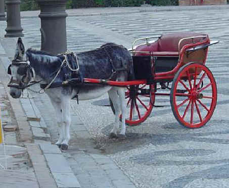 4 de Enero de 2006 Según me cuenta ,van a incluir encima, no tirando de una de las carroza de la Cabalgata de los Reyes Magos, un borrico de carne y hueso de Rute,( donde hay la mayor reserva de burros de España - de cuatro patas se entiende - de dos tenemos algunos en nuestra clase política ) con un señor disfrazado de poeta en homenaje al cincuentenario del premio Nobel de Juan Ramón Jiménez , ( cincuentenario que se cumplió el pasado año ) .- Confiemos que el borrico sea la suficientemente viejo o lo lleve lo suficientemente sedado para no formar el taco, amen de como el magistral Florito hace en la Ventas con los cabestros, los tengan a dieta , para que no se haga ni pipi ni popo .- Mi no comprender, Juan Ramón, amen de hacer novillos en la Universidad hispalense, vivir en la calle Gerona y asistir al Palacio de la Dueñas a clase de pintura , como que no le veo yo la vinculación. Por esa misma regla de tres, podrían hacer una carroza con Vicente Aleixandre , sevillano y que este año se cumple treintas año de su también Premio Nobel de Literatura.- Pero a lo que ibamos y en lo que a burros se refiere, miren Platero es una moneria , pero aquí tenemos otros asnos, mas famosos, merecedores de figurar en una carroza de la cabalgata de Reyes Sevilla.- El primero de ellos es el que ven en la foto, el querido y nunca bien ponderado burrito de la Plaza de España ( que si le soy sincero últimamente no se si presta sus servicios, como el caso de las barquitas ) que forma parte del patrimonio inmaterial de generaciones y generaciones de sevillanos ( lógicamente en diferentes generaciones de sufridos cuadrúpedos ) que en su tierna infancia daban vuelta a la plaza , llevando un enganchado un pequeño charret, donde iban montada la chiquillería. Estarán conmigo que tras décadas de servicios prestado a esta Muy Desagradecida Ciudad de Sevilla, es merecedor del homenaje en una carroza .- El segundo, merecedor de un homenaje en el cortejo de los Reyes de Oriente , seria el de "calle Don Alonso el Sabio antes Burro"; porque verán, esto de pegarle el cambiazo a la calles no es exclusiva de nuestro inclito Alcalde. Alguien tuvo la humorada de la calle El Burro, cambiarle el nomenclator por Don Alonso el Sabio , por Alfonso X el Sabio, el inventor del escudo jeroglífico NO8DO , el No "Madeja" DO, que como bien dice el maestro Burgos deberían ser sustituido por un mas vigente NoPassssaNá.- El tercero , seria sin duda nuestra querida borriquita y la ruchita, del paso del mismo nombre, aunque pensándolo mejor , estos dos últimos borricos , no se pueden quejar porque va en un paso , portando a Jesús, que se nos antoja como una Resurrección montada , como si anticipada y triunfalmente nos contara la película por el principio, pero con un final que todos sabremos que a pesar de la Pasión y Muerte , acabará felizmente esta historia .Y es que oigan, los mismo que tenemos los Caballos de Santa Catalina, con su Cuesta de Robles ( antes del Bacalao ) y Cuesta del Rosario ; el Caballo, con el izquierdo por delante de la Esperanza de Triana, tenemos nuestra Borriquita ( por ahora exclusivamente para niños en el sentido literal de la palabra, sin masculino genérico ) y sus campanillas como muñidora y pregonera ( sin dossier ) de una nueva Semana Santa .- Platero es pequeño, peludo, suave....y