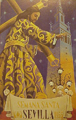 13 de Enero de 2007 No hay duda que este es el año de la Hermandad del Valle que ha hecho doblete al comparecer con la Sagrada Imagen de su Nazareno , tanto en el Via Crucis del Consejo, como en el magnifico cuadro pintado por Doña Isanel Sola, para el cartel de la Semana Santa 2007 . Es la primera vez que ocurre esta sinmultaneidad en la historia de los Via Crucis y Carteles del Consejo .- Como se ve en la imagen en primer plano el Nazareno, parece posar su mano en señal de protección de uno de los niños prestes que acompañan a la hermandad.( por segunda vez el retrato de un niño aparece en un cartel que nos recuerda Retrato de un acólito del cartel de la Semana Santa 2002 de Manuel Sanchez Arcenegui ) Al fondo se adivina el palio de la virgen del Valle, teniendo como marco un trozo de la Giralda .- Curiosamente en 1955 Francisco Maireles ,