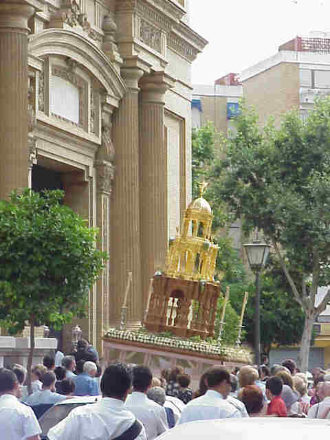 Corpus de La Sed o Nervión .Salida 20.00 horas de la tarde . El itinerario que recorrerá es el siguiente: Templo, Cristo de la Sed, Beatríz de Suabia, Eduardo Dato, Beatríz de Suabia, Juan de Juanes, Cardenal Lluch, Cean Bermúdez, Marques del Nervión, entrada Sanatorio San Juán De Dios Eduardo Dato, Goya, Cristo de la Sed y entrada al templo.