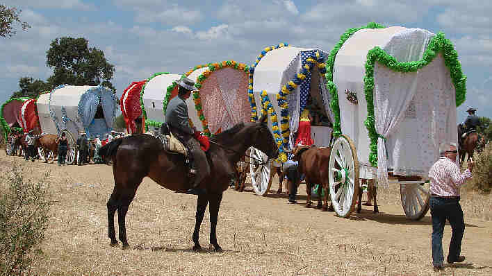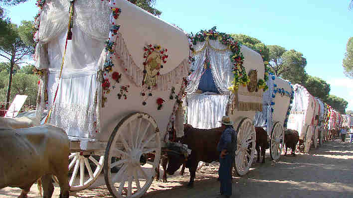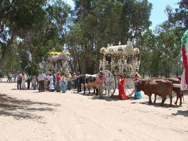 Como veran hay que realizar un autentico esfuerzo para ver la ensoñiación rocierra de sonidos de tintineo de collerores de bueyes o crujir de maderas de carretas, en una pesadilla de mal gusto de tiradores de cerveza alimentados por generadores, embutidos en interminables y pesadisimas carriolas , aunque como les decía al principio son las dos caras de un mismo Rocio , hay que pararse en separaralas .....y por lo que mas quieren dejen los moviles en su casa.-