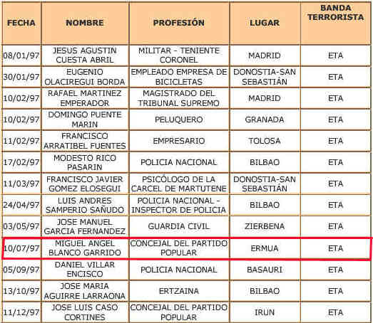 Listado de todos los asesinados por eta desde 1968 hasta 2007 |