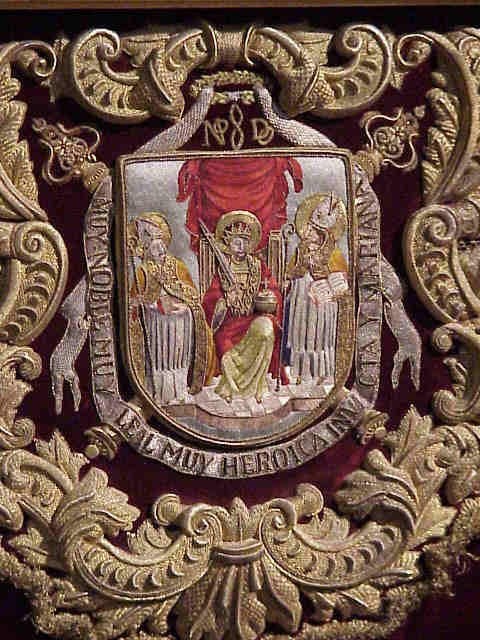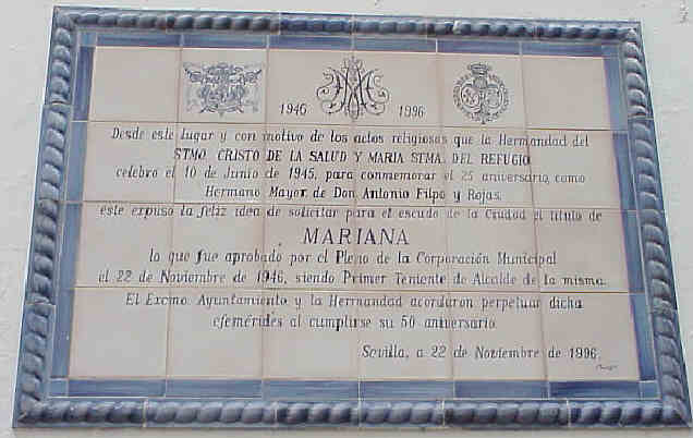 20 de Marzo de 2007Nuestro escudo de armas de Sevilla ( ojo he dicho de Sevilla no del Sevilla ) , no solo esta presente en nuestras hermandades y cofradias en orfebreria y bordados sino que incluso cuando hablamos Sevilla Ciudad Mariana , les contaba como por mor de la Hermandad de San Bernardo y como reza en el azulejo superior fue incluido el titulo de Mariana .-