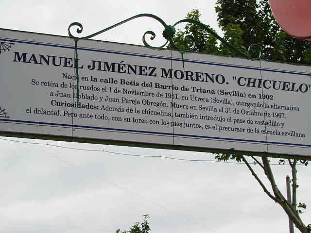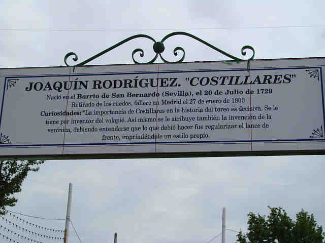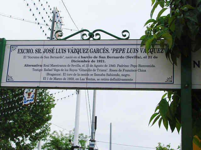 No obstante ,por aquello de que seguimos en Los Remedios y todo depende de las proximas elecciones , a ver si entre todos somos capaces de meter a un personal en "Plaza Nueva", con mas sentido común y que quiera mas a Sevilla que a su partido , aqui les traigo el anverso de las calles de la Feria por la que usted habra pasado este año cienes y cienes de veces, e incluso habra quedado en ella o habra preguntado por ellas y en el reverso que logicamente usted no se habrá detenido a consultar donde te comenta la vida y milagros de toreros sevillanos ( Sevilla Capital y provincia ) , asi como curiosidades de sus importanter aportaciones a la tauromaquia española . Ojo estas placas son desmontadas , cada año al finalizar los dias feriados .-