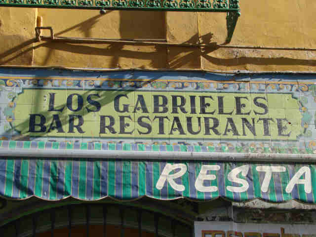 16 de Mayo de 2007El otro dia aprovechando que le estaban quitando , al bar restAurante Los Gabrieles ( se pronuncia "grabieles" ) los dos mil kilos de impia propaganda pegada sobre estas joyas cerámicas publicitarias y antes de que las vuelvan a cubrir y no se puedan ver saque estas fotos Al dia de hoy y desde hace tiempo esta cerrado .-