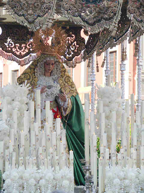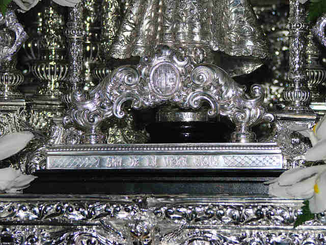 La Virgen del Rocio con sus caracteristicas bambalinas y su recien