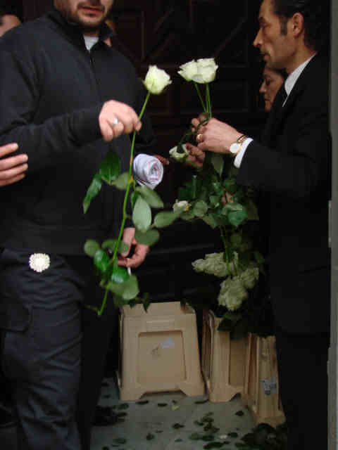 a la salida del templo por la puerta trasera una rosa blanca , de recuerdo