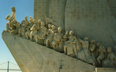 Otro grupo escultorico que se nos viene a la cabeza por aquello de que todos sus personajes aparecen en una rampa ascendente es el impresionante Monumento de los Descubridores de Lisboa ( alli los tranvias sin que son una maravilla ).- Obviamente todo el que asciende lo hace en un movimiento emergente de abajo arriba . Como casi todo el tiempo el otro equipo de la ciudad ha estado ocupando puesto de descenso, a lo mejor tambien es una invocación subliminal para salir de este bache modelo obras del metro por lo que estan durando .-