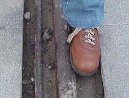entre los actuales railes y el pavimento donde cabe perfectamente el pie