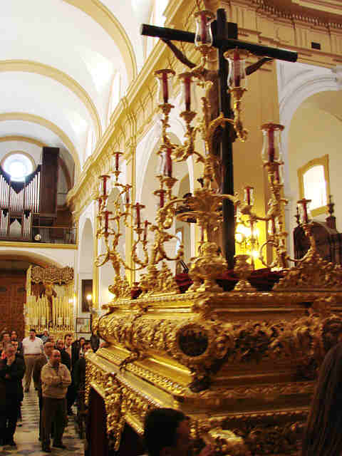 Los pasos ya han quedado perfectamente colocados y cuadrados en el lugar donde la proxima vez que suene los martillo y sus trabajaderas se llenen de costaleros sera para echarse a la calle .-