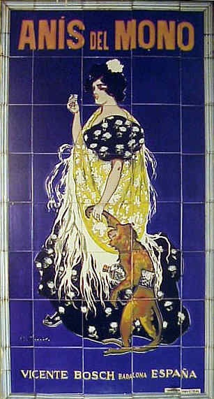 Como ustedes saben que un servidor es el tonto de los azulejos tambien es de destacar esta joya de lienzo cerámico publicitario de Anís del Mono obra del pintor Ramón Casas y fechado en 1925 .- Oiga y como todo no va ser beber, de tapeo es casi obligado el pavia de bacalao, las espinacas con garbanzo y el jamón mismo .-