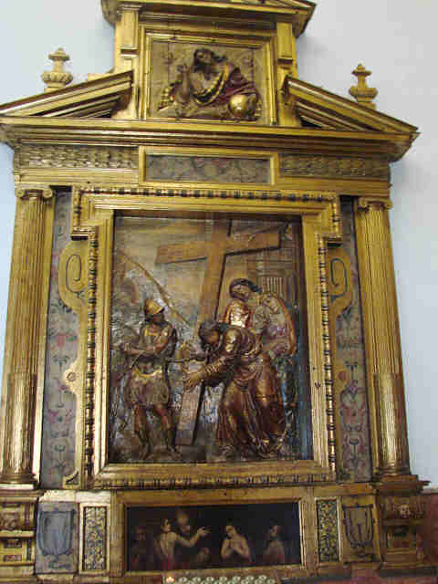 Tambien destacan este relieve Camino del Calvario obra de Juan de Oviedo el Viejo fechado en 1587, asi el ático como una imagen de Dios Padre del mismo autor .-