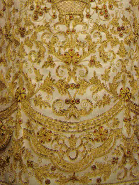Uno de los mas usuales ahn sido regalar trajes de luces, los cuales han sido aprovechados para reciclarlso en sayas que llevna al gunas de nuestras Virgenes en diferentes ocasiones. Observen la primera foto esquema y estaran conmigo que es un arte recombertir una chaquetilla y una talegilla en una saya semanasantera, dada su complejidad .-