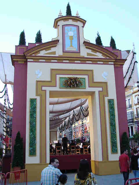 7 de Junio de 2007De triste y pobretón se podria calificar el exhorno del recorrido del Corpus 2007 . Solo tres altares eucaristico ( los que puede ver a continuación ) se podia ayer contemplar en las calles sevillanas .-