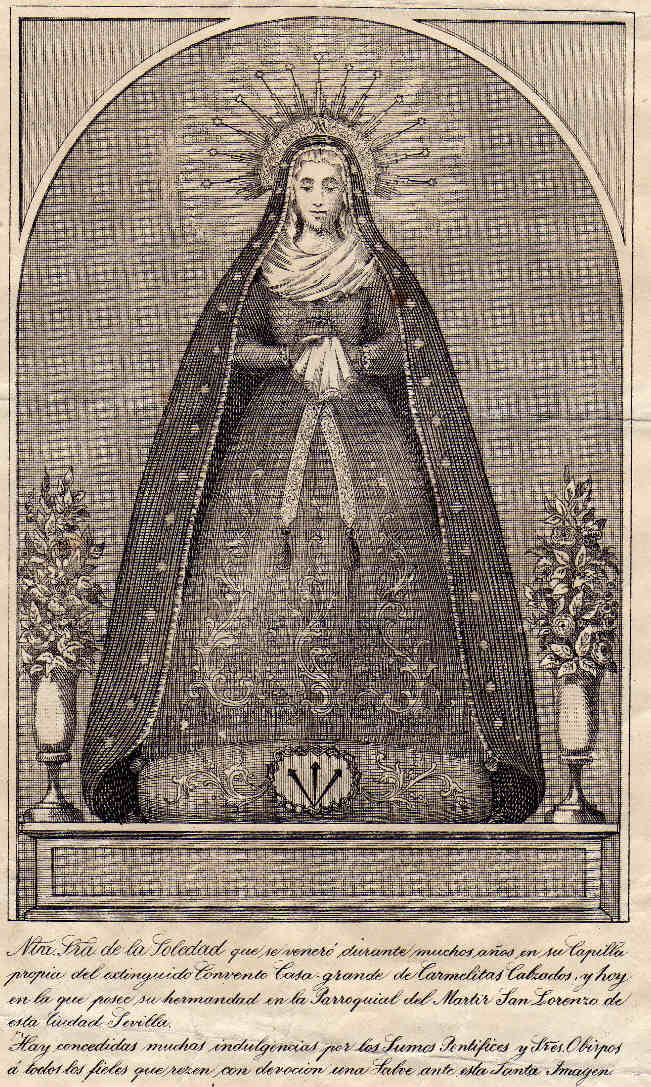 Respecto a su cartel , un oleo no muy afortunado que digamos y no se porque ( o si ) se me ha venido a la memoria en el profundo calado histórico de esta tan señera hermandad, que paradogicamente , representa el Misterio de la "Stabat Mater junxtan crucem" ( cosa que cierto iluminado hermano desconocia por lo visto y quizo cambiar la advocacion ), fue la primera Dolorosa sevillana en procesionar bajo palio.-