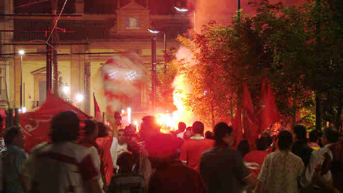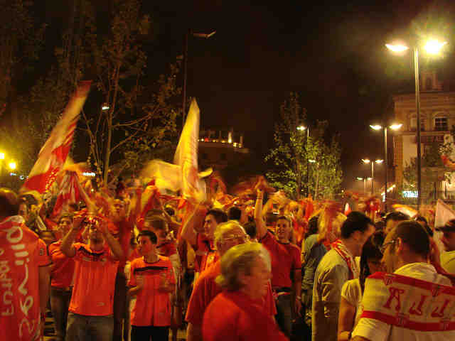 ¿ Se imagina que este efecto lo provocara alguno de nuestros alcaldables ?. No, ayer la "pasion", ( otra pasión) estalló a primeras horas de una calida madrugada sevillana, donde media Sevilla se hecho a la calle a vitorear, lo que no ha hecho mas que empezar y de lo que espera por venir . Seguimos vivitos y coleando en dos otras competiciones arañando su titulos.-