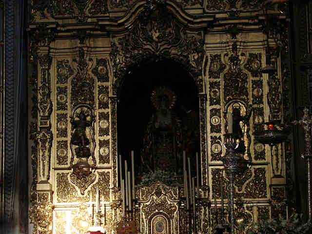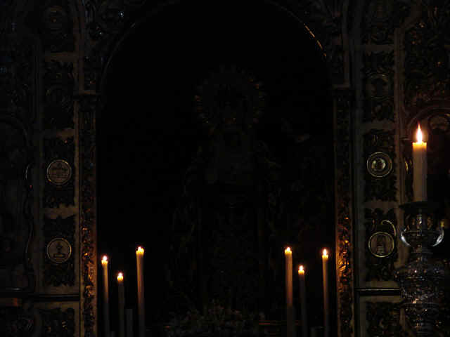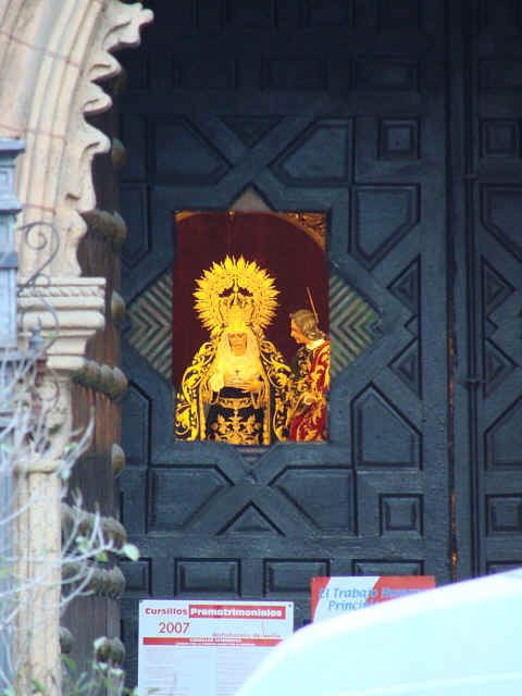 En Sevilla como siempre le digo hay que mirar para todas partes , pues muchas veces, cuando nos alejamos como ayer me ocurrió subiendo por la calle Viriato , me dio por girame encontrar encuadres como este , donde los mismo que el Sol se asoma en un Besamanos de alineación de astros , pareciera o parecieses como si la dolorosa belleza Maria Santisima de la Amargura ,se saliera de su templo e iluminara las almas de los que pasaban por la calle Feria .- Todo esto ocurre el mismo dia y a la misma hora