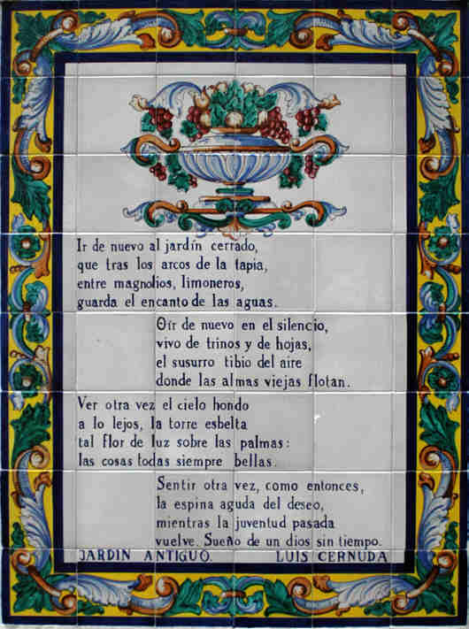 Te informan en uno que allí vivió el inmortal poeta sevillano. y en el otro un hermoso poema completo , el Jardín Antiguo, muy propio para la romántica y tristona luz que hay hoy en estos días de frío húmedo otoñal que se te cala hasta los huesos.-