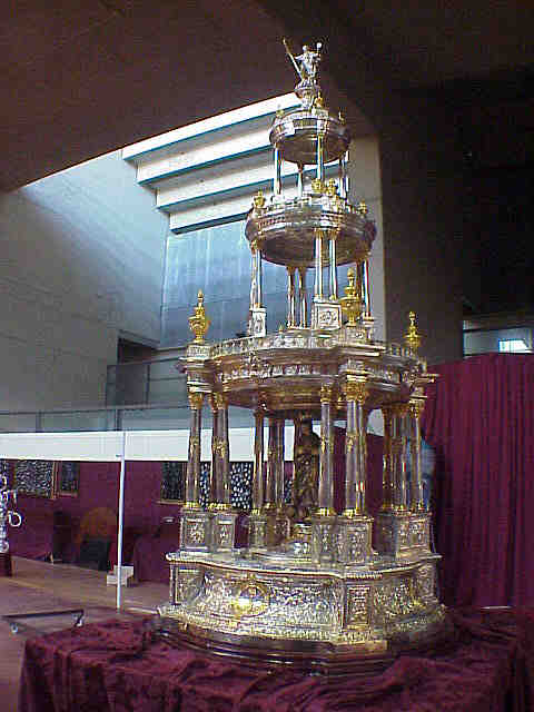 Sevilla 12 de Septiembre 2007 Mañana dia 14 , festividad de la Exaltación de la Santa Cruz, la Hermandad de San Bernardo organizacia un Corpus en Septiembre y nocturno .-. La custodia que aqui ven fue adquirida en 1913 por setecientas de las antiguas pesetas a la Hermandad de la Carretería,. midiendo 2,50 metros de altura. -