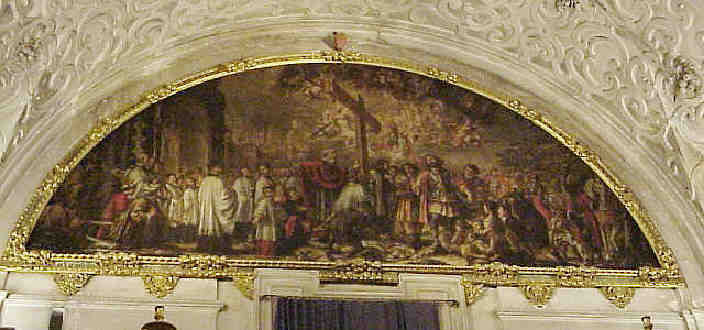 Sevilla 14 de Septiembre 2007 Hoy se celebra la exaltación de la Santa Cruz y en la Iglesia del Hospital de la Santa Caridad ( hagase un favor, haga un favor a sus hijos y vaya a verlo ) concretamente en su coro está este absolutamente inconmesurable lienzo de Juan de Valdez Leal, que forma parte del repetorio alegórico inspirado por Miguel Mañara.- Alude al principio evangelico de que ningún rico podrá entrar en el Reino de los Cielos.( a mi no me miren lo dicen los Evangelios ) .- Fechado en 1684, en el se representa al emperador