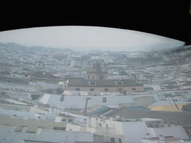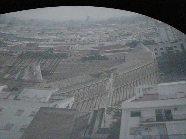 7 de Octubre de 2007 JULIO DOMINGUEZ ARJONA En su día les hablé de TORRE DE LOS PERDIGONES , externamente y de su historia. Hoy les traigo lo que hay en su interior ; con las mas sincera de las recomendaciones que vayan a verlo y disfruten de como se ve Sevilla desde 45 metros de altura desde la parte Norte de la ciudad .- Su "cámara oscura" es una especie de objetivo nos permitirá contemplar la Sevilla como si estuvieramos dentro de una cámara fotográfica. Se trata de una habitación sin luz sobre una pantalla redonda y concava , mediante un sistema de lentes (como un periscopio) se proyecta una imagen de la ciudad en color y en movimiento a tiempo real.- Una especie de "Ventana Indiscreta" de Alfred Hitchcock . Un recorrido