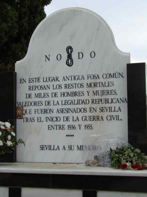 20 de Noviembre de 2007Posiblemente nuestro edil de la humeante pipa ( es una suposición ) por su alergia a la religión católica, ( las cruces, los curas, las oraciones ) que pueden contaminar la pureza de su alma laica, desconozca que en el Cementerio de San Fernando hay una glorieta homenaje a los caídos por la República . A lo mejor si lo supiera o supiese no habría cogido la perra que ha cogido con la placa o monolito en las murallas de la Macarena, es decir estaríamos ante una duplicación de recordatorio ( cosa por otro lado muy sevillana ) .-