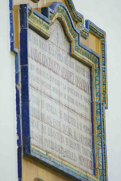 En La Palmera se puede ver con cierta dificultad este azulejo que ven en la foto superior, en la fachada principal de la casa ( que es una replica del original que se encuentra en unos laterales )