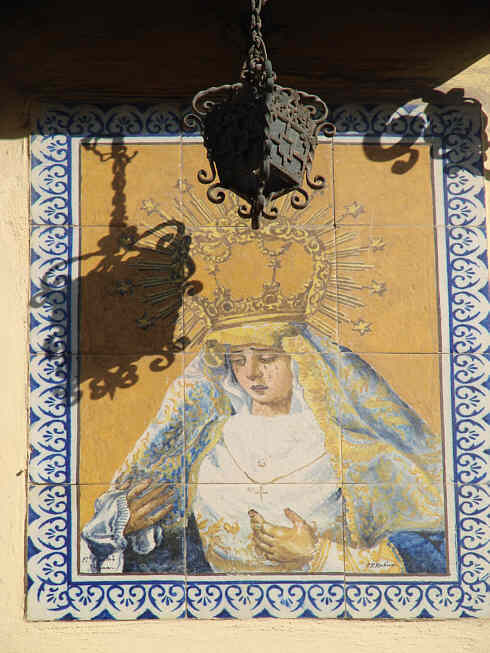 Sin duda es el mas antiguo pues prácticamente es contemporáneo con la Dolorosa que tallara por Manuel Galiano en 1927 . Este azulejo es "hermano" del mas conocido dedicado al Cristo de la Salud y Buen Viaje , que estuvo en la fachada de San Esteban y hoy se encuentra dentro de la casa de Hermandad .-